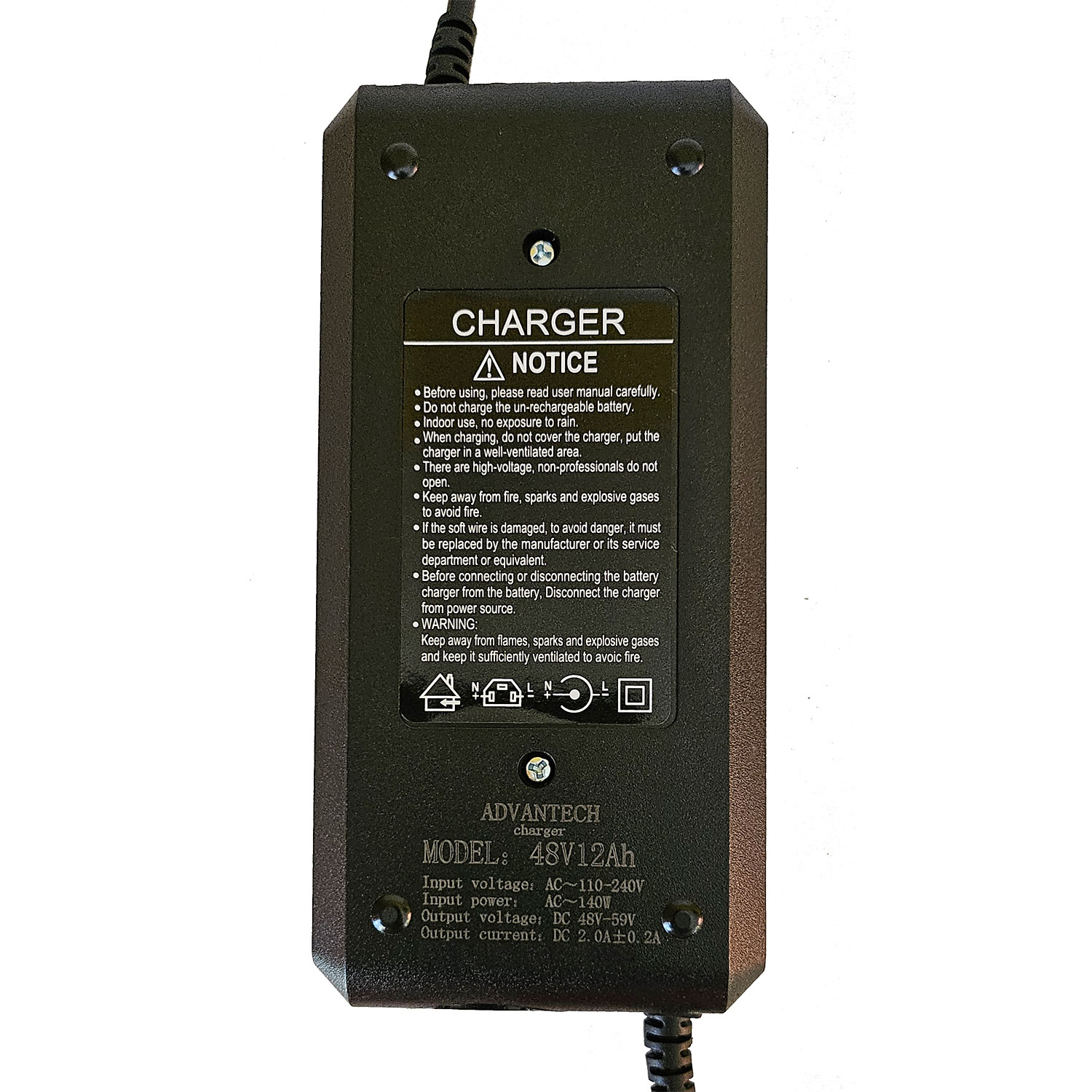 • Cargador exclusivo para de Baterías de plomo-acido, gel o grafeno de 48V 12AH. No usarlo en baterías de litio.