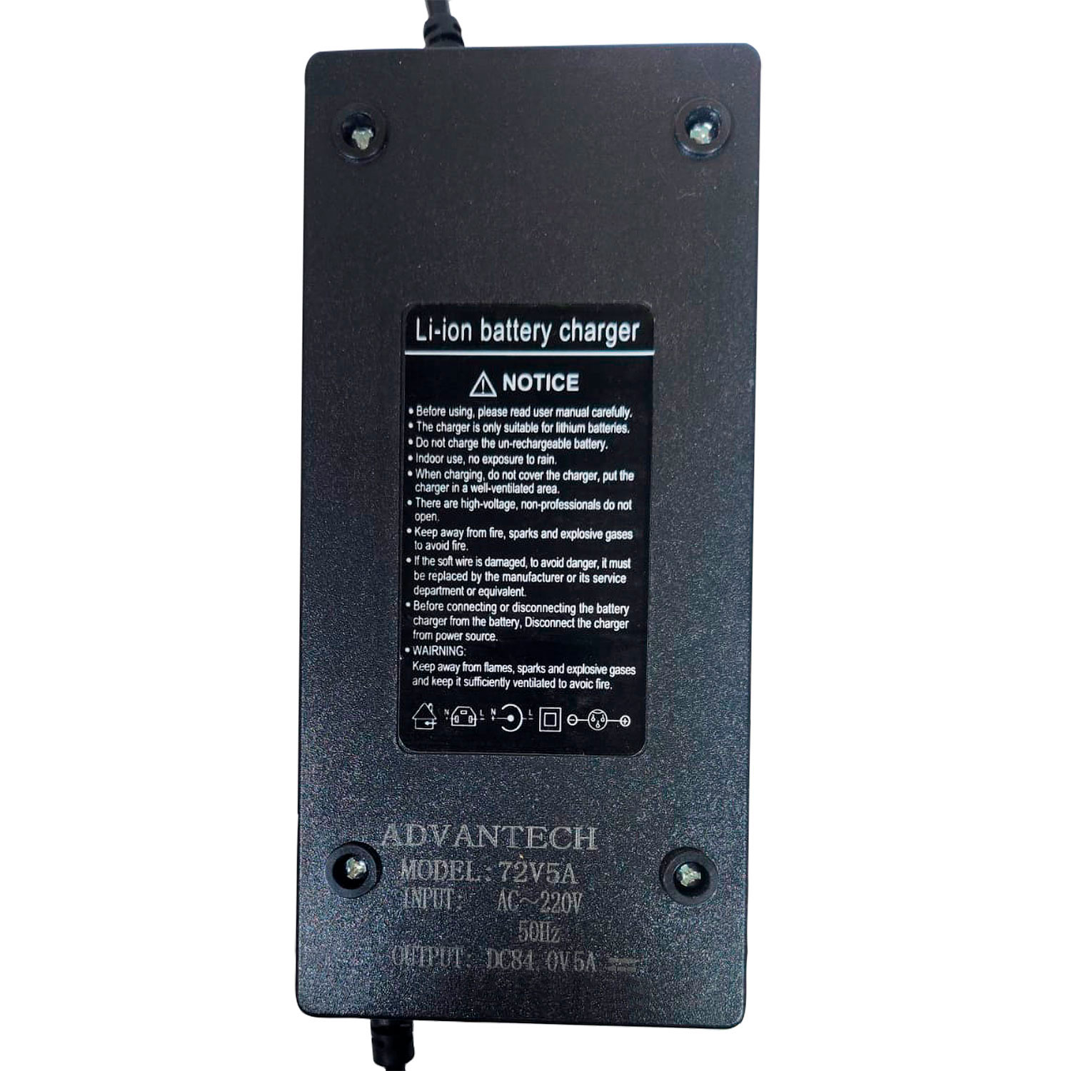 - Cargador exclusivo para-Bancos/Packs de Baterías de litio de Configuración 20S (72V).